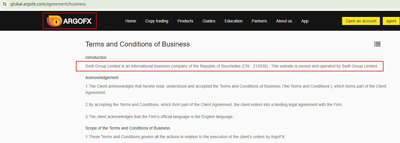 ArgoFX presents itself as a trading platform offering access to a variety of trading assets, including forex pairs, commodities, and indices. However, it is an unregulated broker.ArgoFX refers to itself under different company names in its legal notices. In its Terms and Conditions, it states that the website is operated by Swilt Group Limited, supposedly based in Seychelles. However, our search in the Seychelles Financial Services Authority (Seychelles FSA) registry yielded no results for this company, indicating that it is not licensed or regulated in Seychelles. This is a significant red flag. Conversely, in its Risk Disclosure Notice, it identifies itself as ArgoFX LLC. Despite listing a UK phone number as its hotline, our search in the Financial Conduct Authority (FCA)'s register found no record of it.Considering these findings, ArgoFX poses risks of fraud and identity theft. Traders interacting with it will not be protected by any regulatory framework. We conclude that ArgoFX is a scam and strongly advise investors to avoid it.
