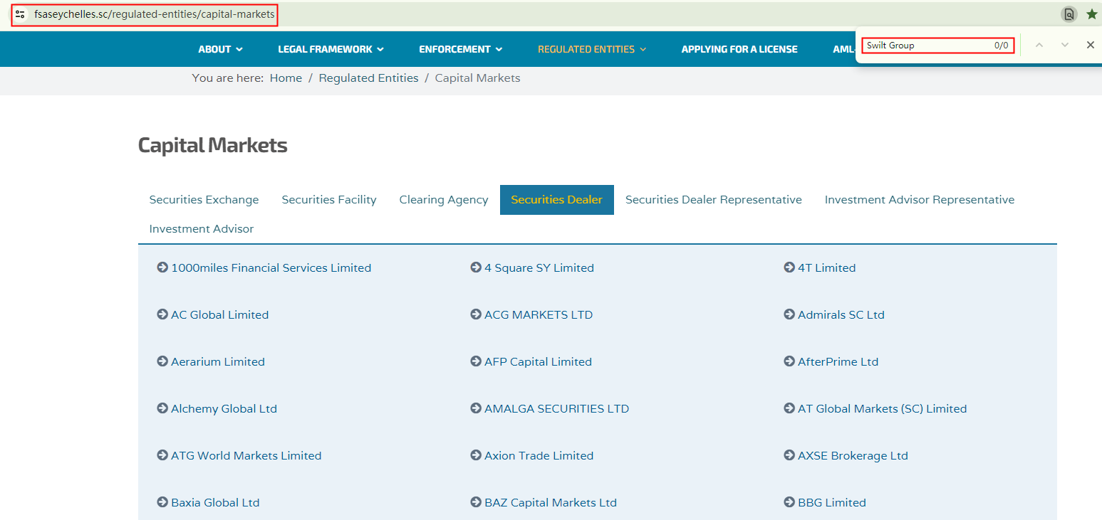 In its Terms and Conditions, it states that the website is operated by Swilt Group Limited, supposedly based in Seychelles. However, our search in the Seychelles Financial Services Authority (Seychelles FSA) registry yielded no results for this company, indicating that it is not licensed or regulated in Seychelles. This is a significant red flag.