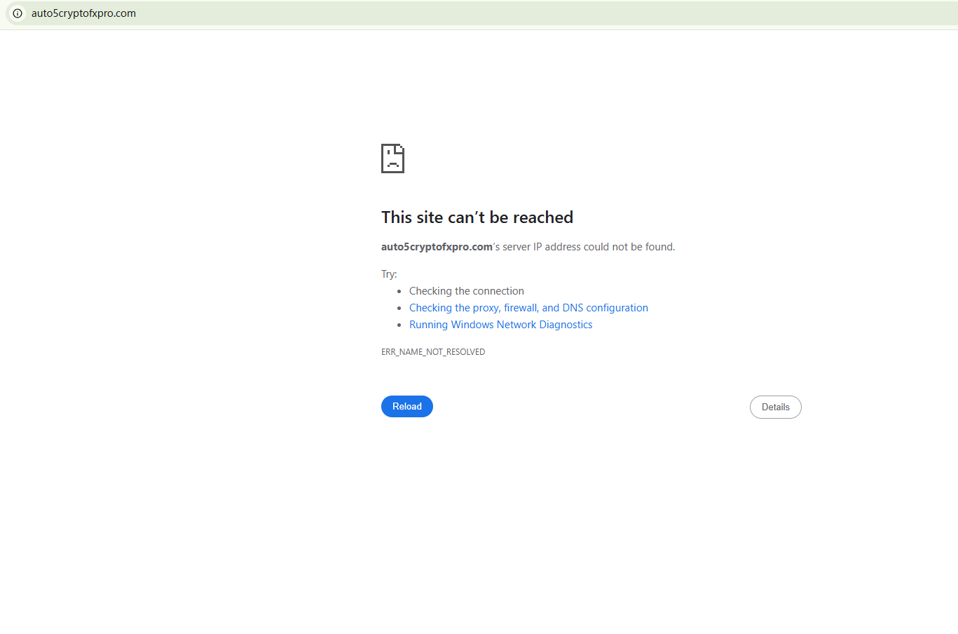 In essence, Auto5CryptoFxPro is not regulated by any governing body. Entrusting this broker with investors' funds is highly risky, as there are no legal protections in place to safeguard the funds.