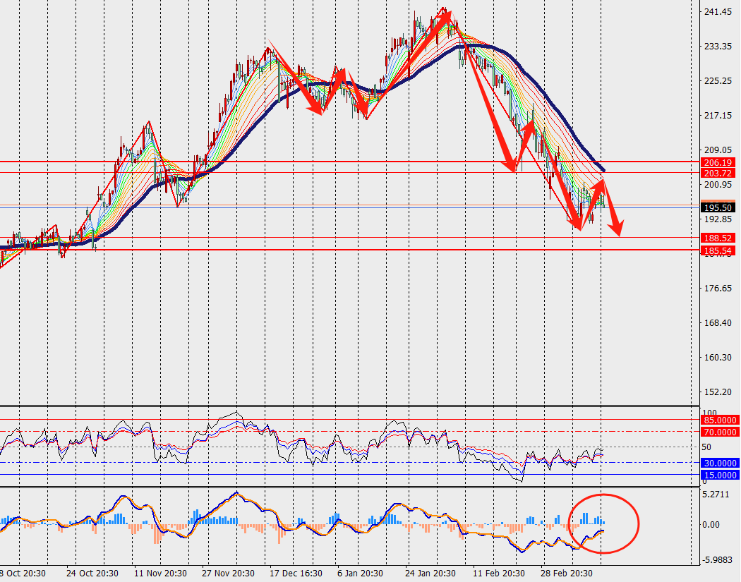 技术面:亚马逊H4级别遇阻回落,并在48日多空分界线下方运行。此外,MACD双线和量能柱在零轴附近收敛。亚马逊正在设想客户在人工智能设备方面的下一个产品,有一些令人难以置信的产品正在筹备中。